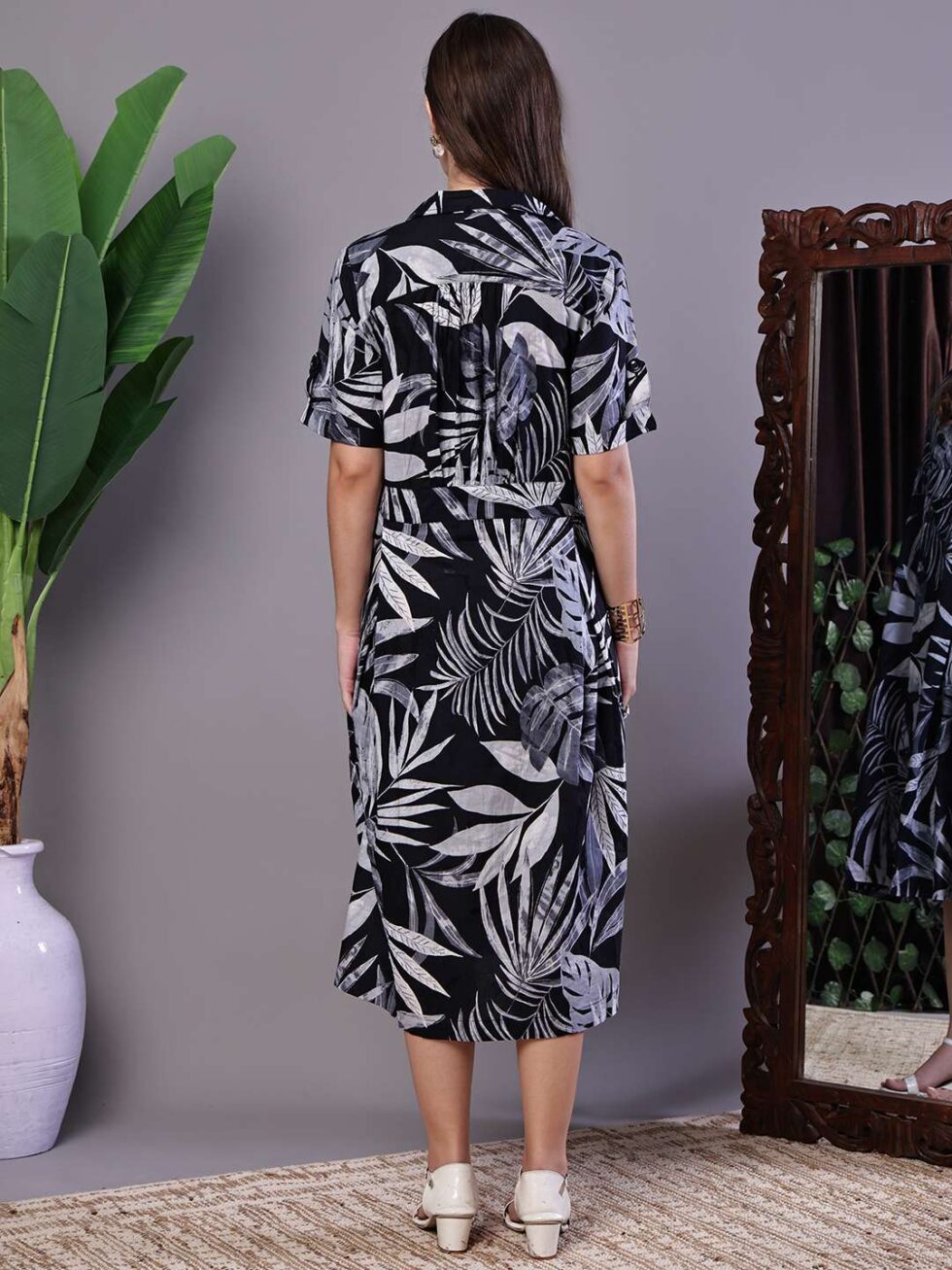 Women’s Tropical Palm Print Black & White Cotton Shirt Dress